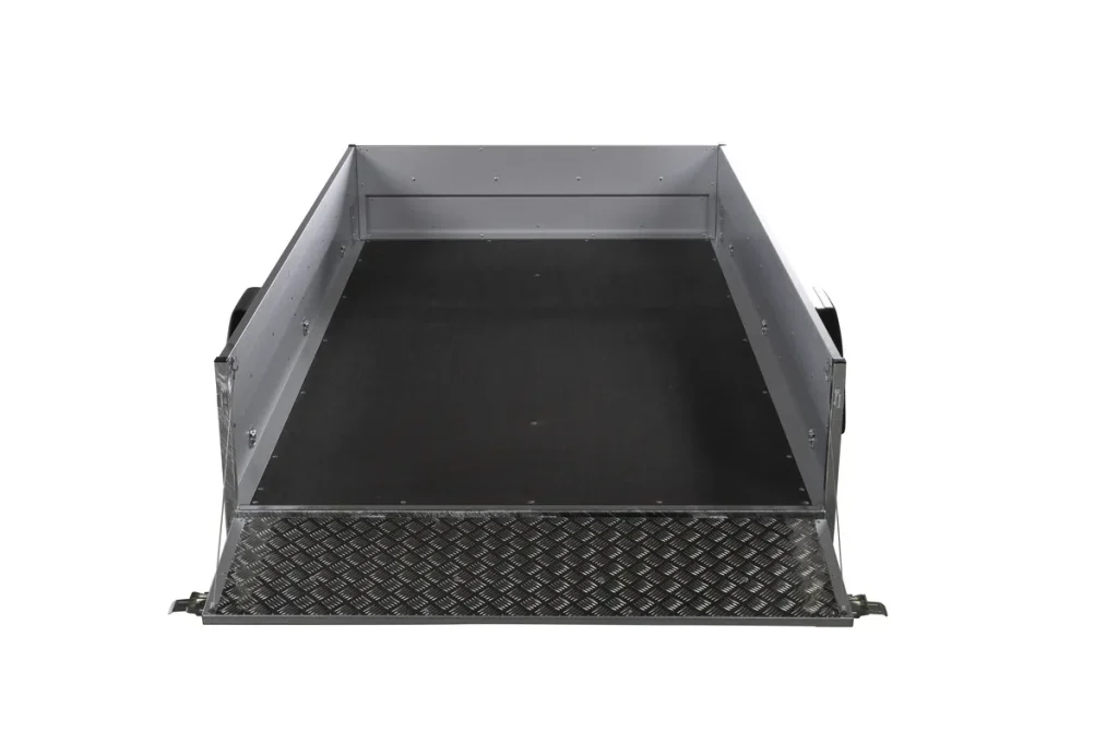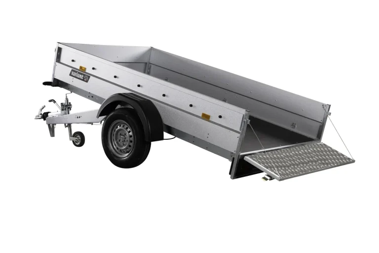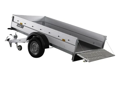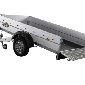 Stabiler Anhänger mit Kippfunktion, ideal für Bau und Gartenbau. Verzinkter Stahl, Zurrösen & Zubehör für den Profi – 1350 kg Gesamtgewicht.