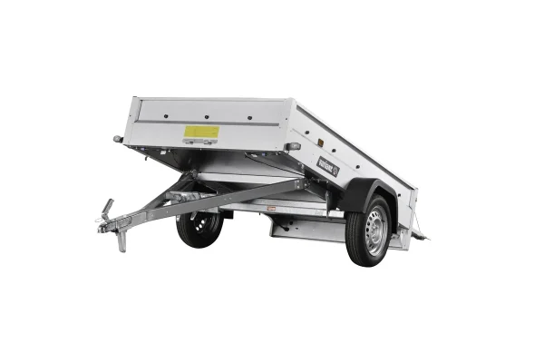 Praktischer 750-kg-Freizeitanhänger mit Kippfunktion, stabilen Stahlwänden und vielen Konfigurationsoptionen für Garten und Hobby.