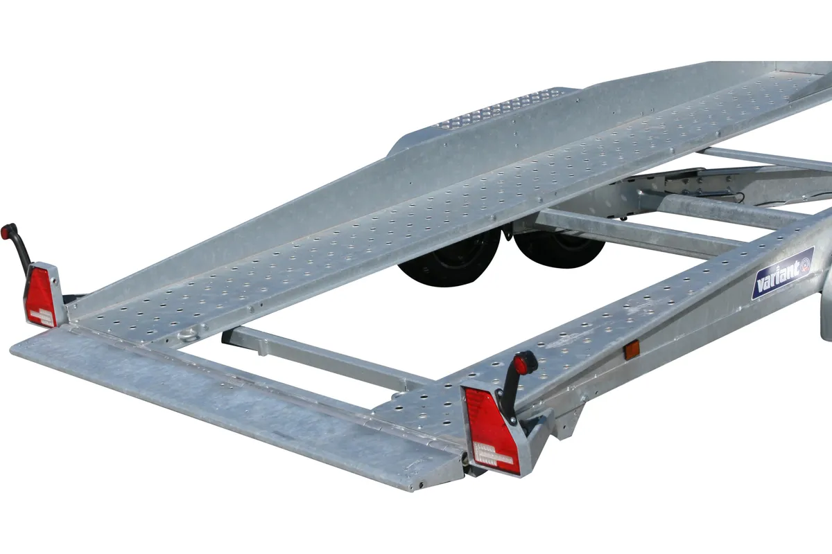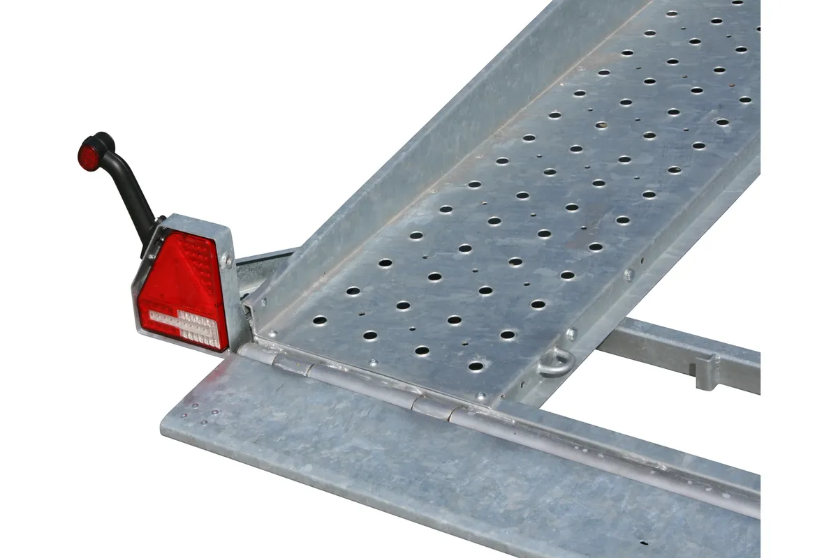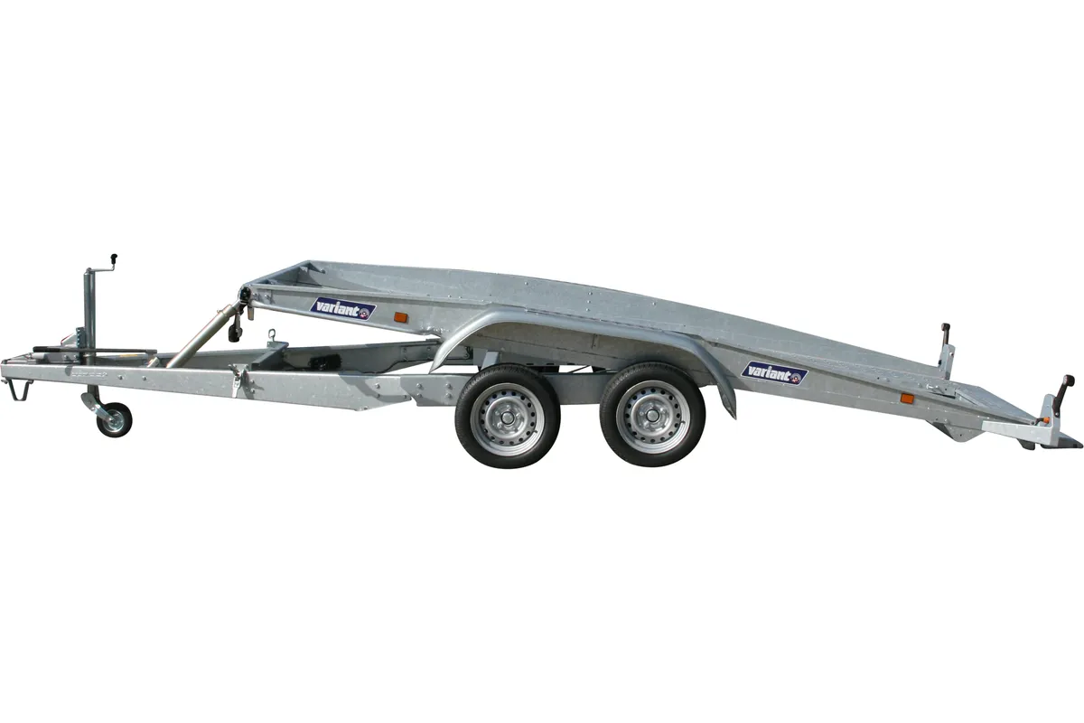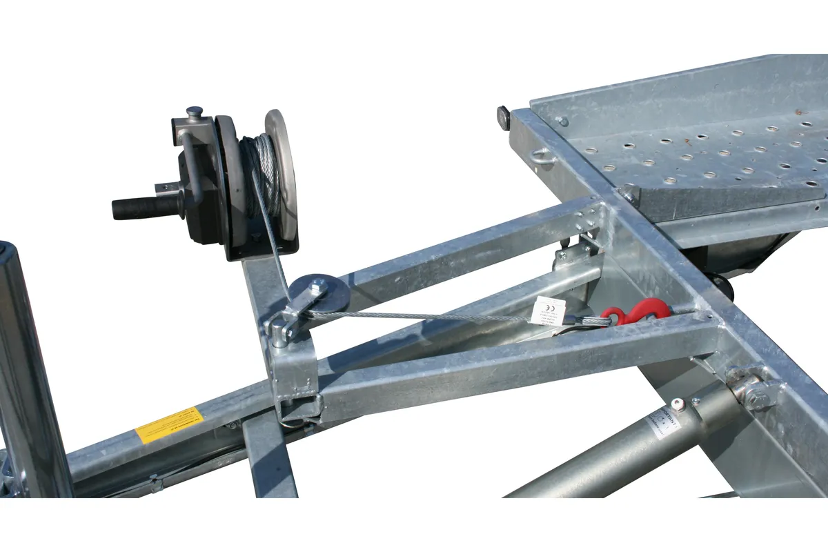 Robuster Autotransportanhänger mit 2700 kg zul. Gesamtgewicht, LED-Beleuchtung, Seilwinde und feuerverzinkter Stahlkonstruktion.