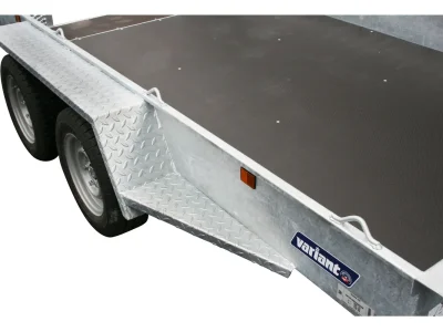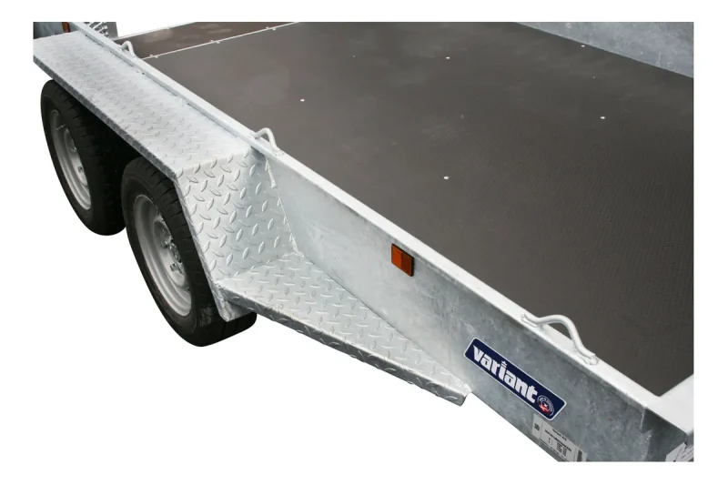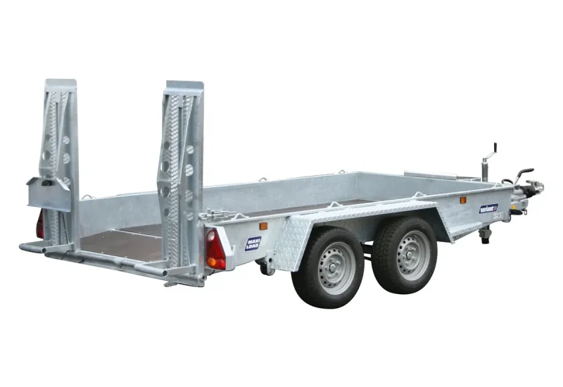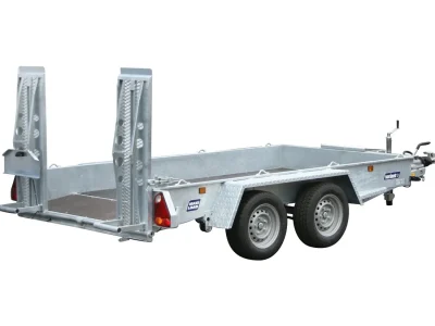 Robuster Anhänger mit Beavertail, Bremse, LED, Zurrpunkten und optionalem Zubehör für sicheren, professionellen Maschinentransport.