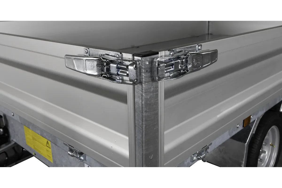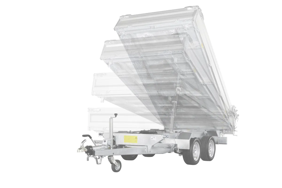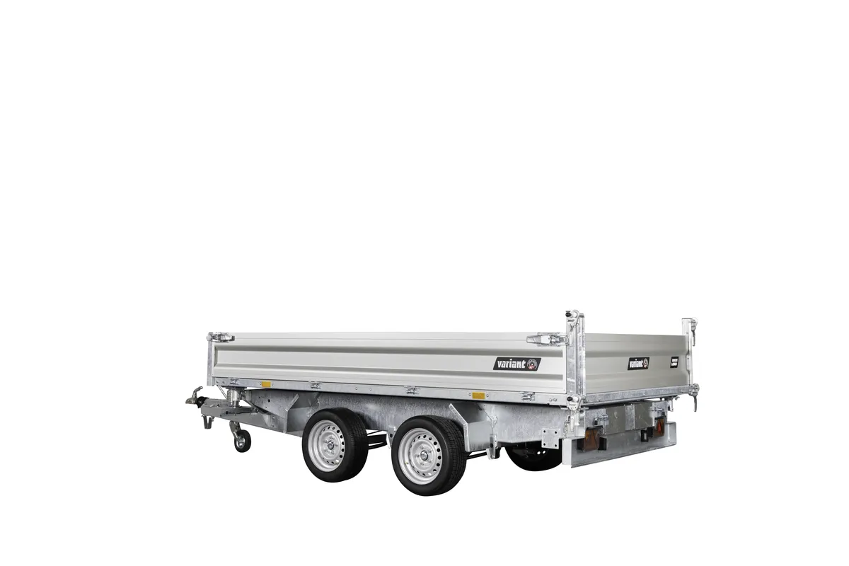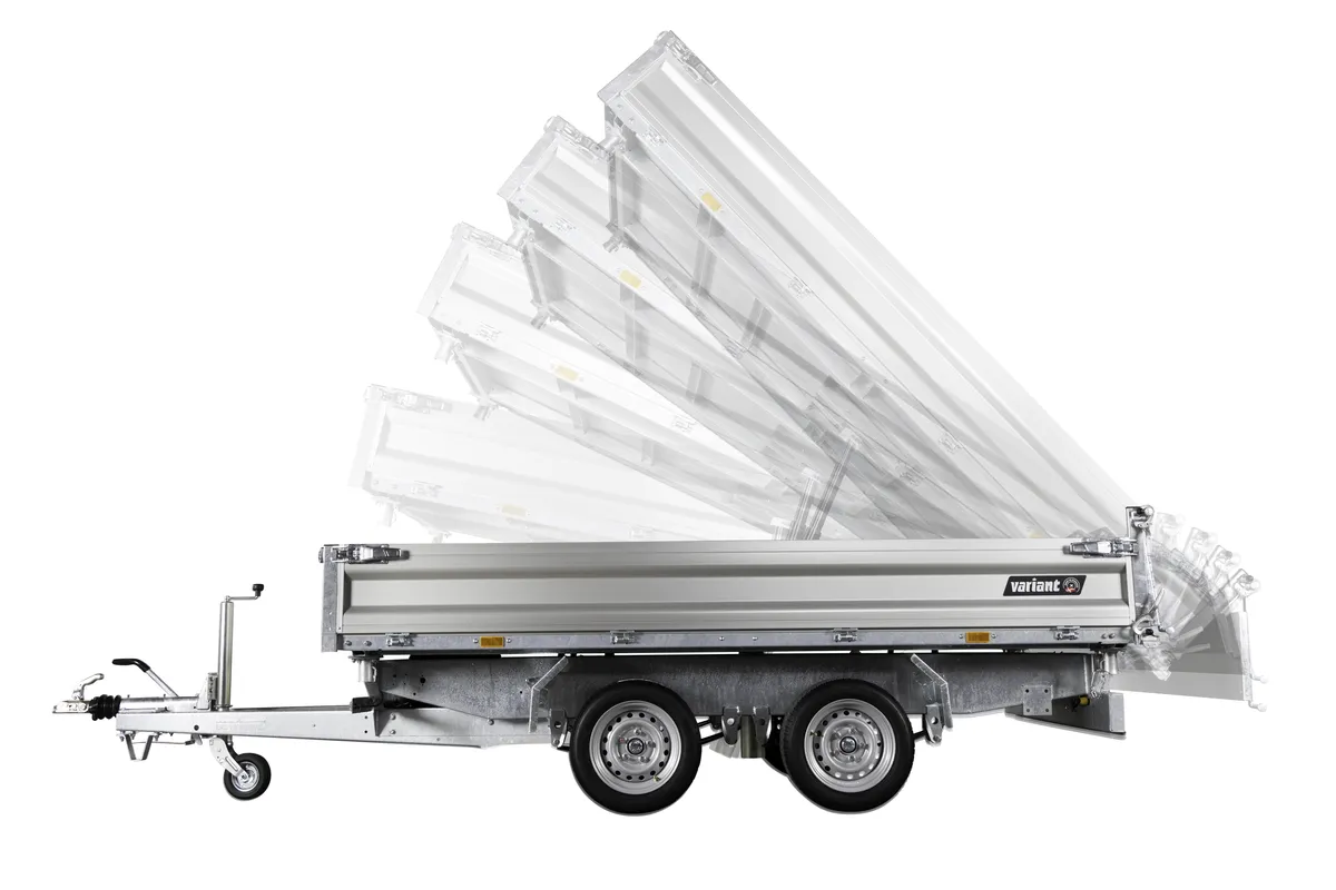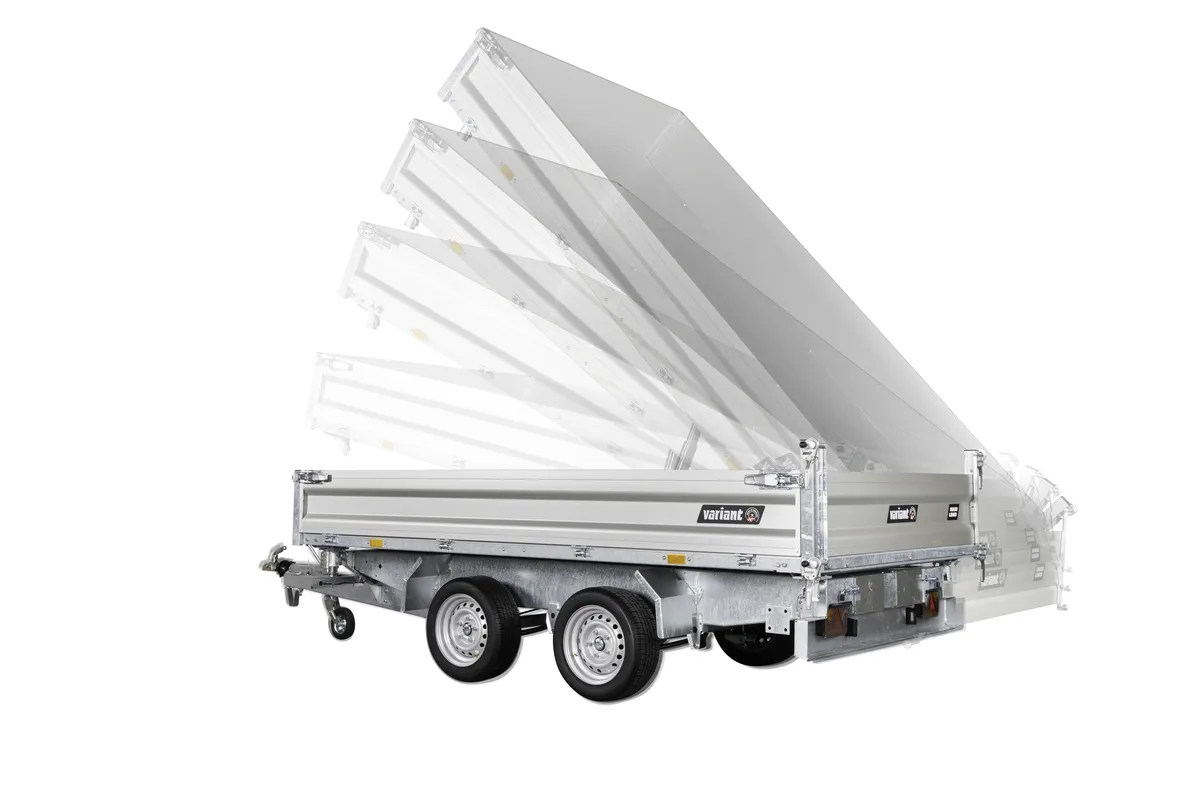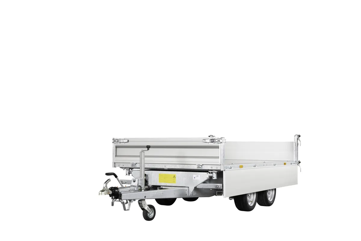 Robuster 3-Seiten-Kipper für Profi- und Privatnutzer – 3000 kg, Stahlboden, Aluwände, Kippfunktion, Zurrösen, optionales Zubehör.