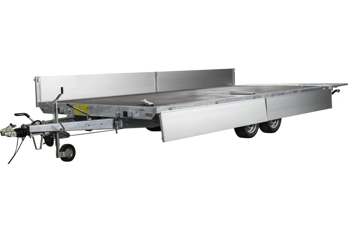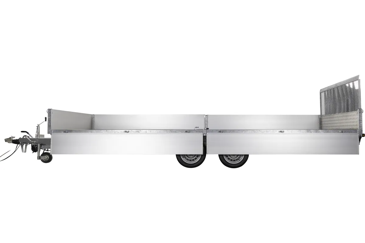 Durch die unter der Ladefläche positionierten Räder wird eine maximale Ladefläche erreicht, während die 8 innenliegenden Zurrösen die Ladung während des Transports sichern. Der Anhänger wird serienmäßig mit Stützrad für einfacheres Manövrieren und LED-Beleuchtung für erhöhte Sichtbarkeit und Sicherheit geliefert.