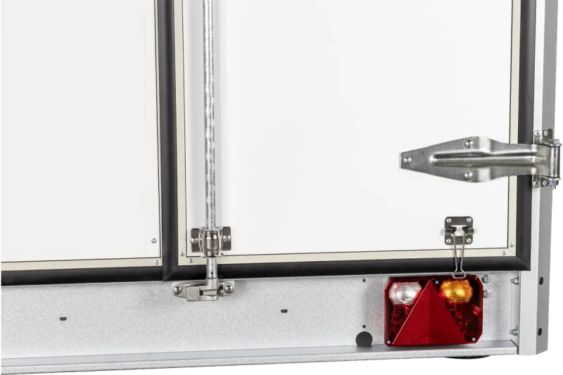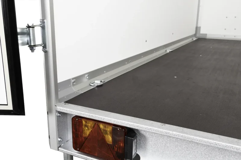 Variant 715 C2 kann mit zusätzlicher Ausstattung konfiguriert werden, die den Nutzwert des Anhängers erhöht. Eine Auffahrrampe kann zur einfacheren Be- und Entladung schwerer Geräte gewählt werden, und Stützfüße können für zusätzliche Stabilität beim Be- und Entladen montiert werden. Wenn ein Zugang von mehreren Seiten gewünscht ist, kann der Anhänger mit einer zusätzlichen Tür ausgestattet werden, und Folierung kann für ein individuelles oder professionelles Erscheinungsbild hinzugefügt werden.