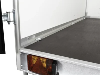 Der Anhänger ist mit 6 innenliegenden Zurrösen ausgestattet, sodass die Ladung während des Transports sicher fixiert werden kann. Ein Stützrad ist serienmäßig für einfaches Rangieren enthalten, und LED-Beleuchtung ist optional erhältlich für bessere Sichtbarkeit und Sicherheit.
