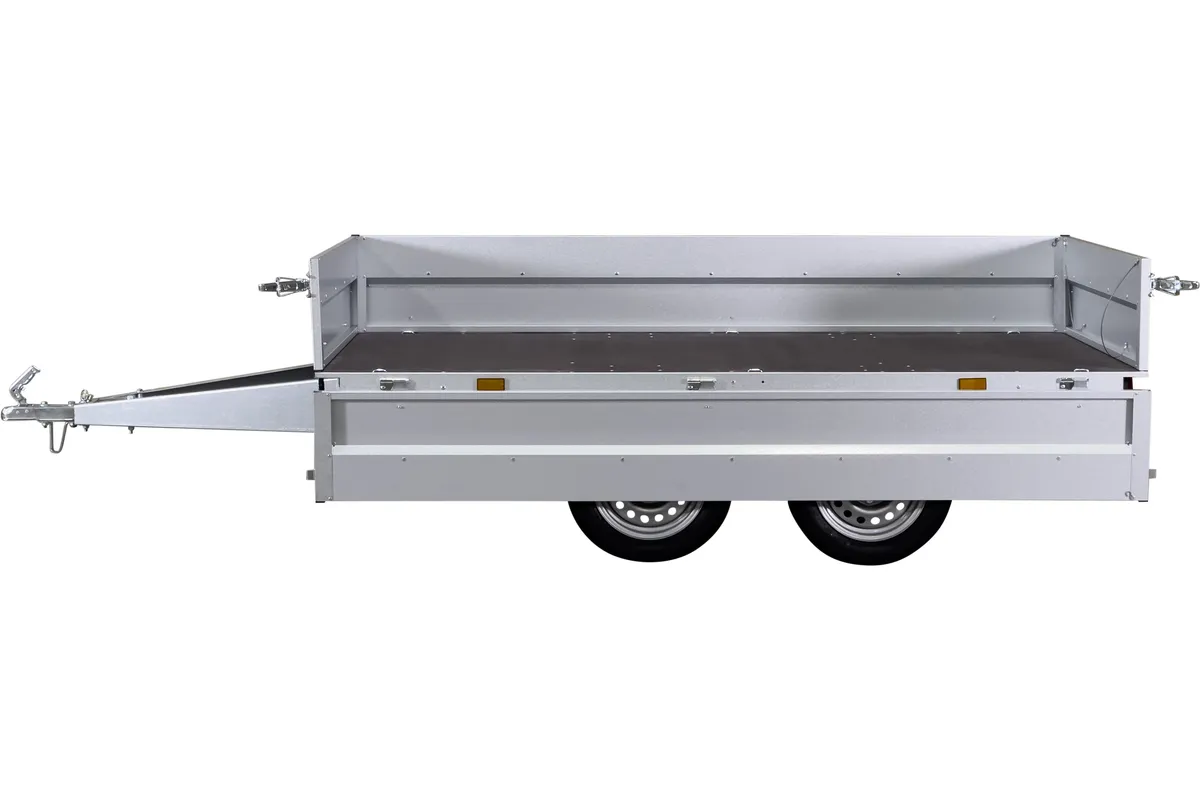 Variant 756 A ist ein Freizeitanhänger aus Stahl, konzipiert für private Nutzer mit Bedarf an einer robusten und geräumigen Lösung für Transportaufgaben. Durch die unter der Ladefläche angebrachten Räder wird die Ladefläche maximal ausgenutzt, was den Anhänger besonders für den Transport von Gartenabfällen, Baumaterialien und Freizeitgeräten geeignet macht.
